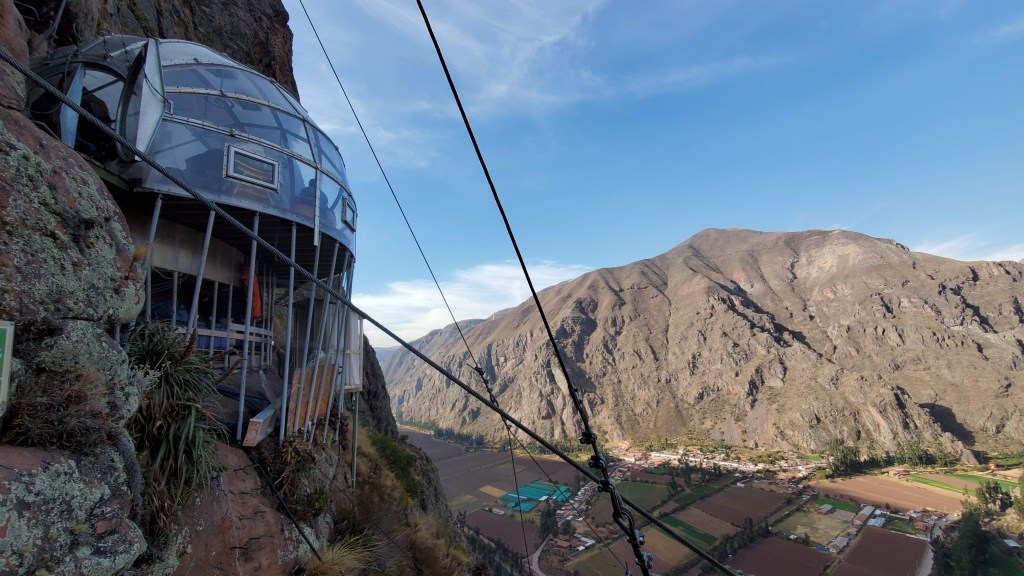 Skylodge runs a set of completely transparent pods suspended 400 meters (1.3k feet) up the side of a mountain in the Sacred Valley of Peru. There are 3 sleeping pods available to book for 1 night and one dining pod for meals. To get up to the pods visitors can select to either climb via ferrata or hike up and for the trip down there are options to zipline or hike. We opted to via ferrata up and zipline down and honestly after seeing the hiking trail up (which you’d still need to clip into) I’m happy with that choice!
