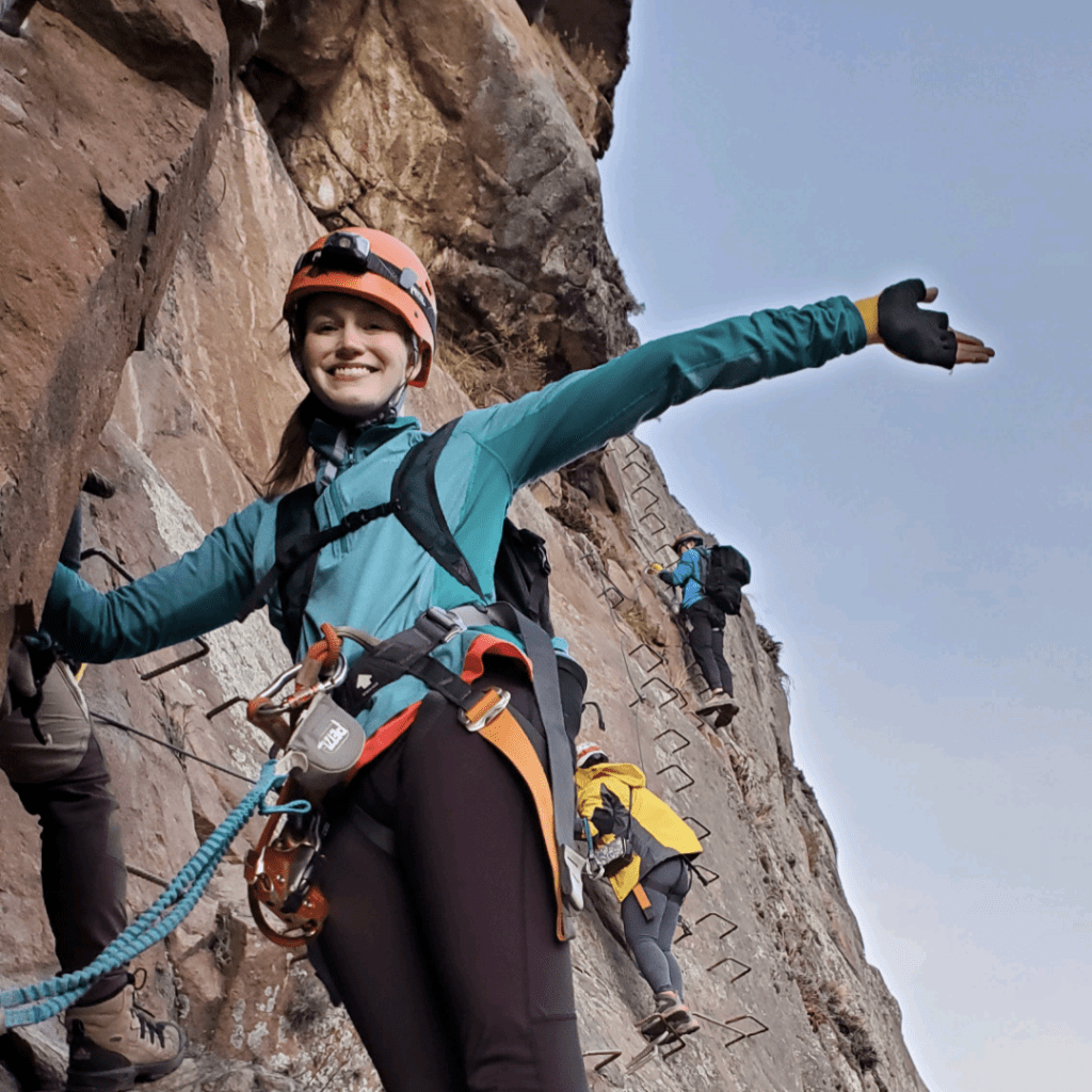 On the day we were to check in we were picked up in Cusco by our guides along with a few other adventurers. They drove us 90 min into the Sacred Valley to the base of the climb and gave us a quick briefing on how to use the via ferrata and clip in safely. And then the climb began! The ascent was not for the faint of heart but it is possible to do with a little bravery and decent fitness level even if you don’t have past climbing experience. One piece of it is a metal wire that you need to just shuffle across and you do spend a lot of time clipping in and out but the guides make sure you’re clipping in properly and are safe throughout.