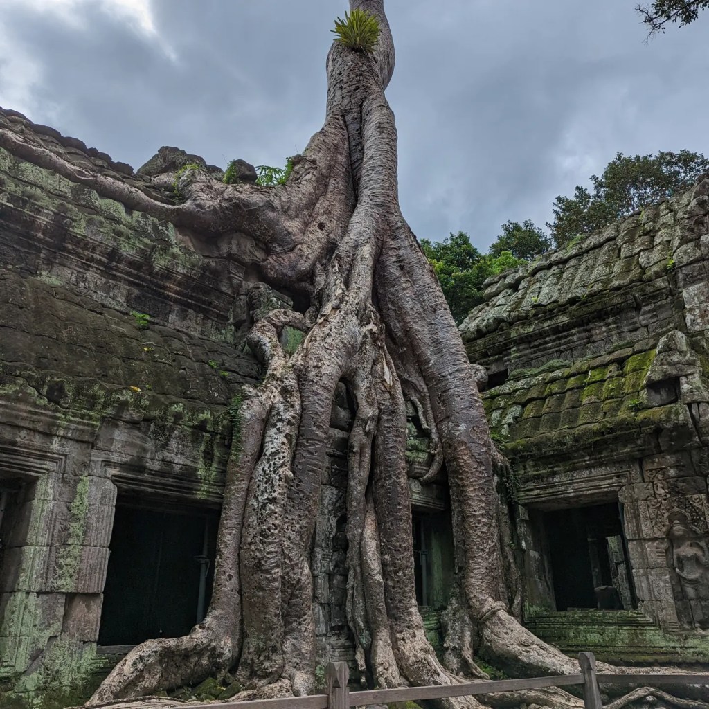 After Angkor Wat we migrated over to Ta Prohm, which is also known as the “Tomb Raider Temple” because of its use in the Lara Croft film. Personally I thought this was even cooler than Angkor Wat and may have been my favorite of the tour. There are trees everywhere growing straight out of the temple structures! This is obviously bad for temple preservation but the intersection of nature and civilization/religion is just a really cool image.