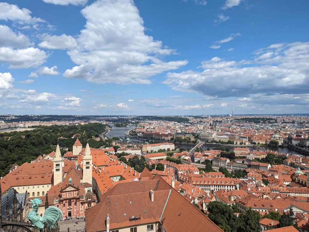 Our last day it finally cooled off and we were able to focus on Prague’s biggest attraction: Prague Castle. We started the day wandering a little around the Jewish Quarter. You can pay to visit the cemetery and the oldest active synagogue in Europe, but unfortunately we knew we wouldn’t have time to make it worth our while. Instead we took the hill up to Prague Castle and (after a quick prosecco break at the top) entered the castle complex. The complex itself is free to enter but if you’d like to fully explore sites like St. Vitus Cathedral or the interior of the palace you’ll want to buy one of the route tickets at the entrance or an information desk. We unfortunately went too late in the day to fit in everything – it’s key to know that, even though the complex is open until 10pm, most of the attractions inside close at 5pm! We did get to go up the tower of St. Vitus and see the interior of the cathedral which was beautiful and well worth it. We also got to browse the stops and stroll the adorable Golden Lane and saw the changing of the guard at the main entrance. The whole complex was really impressive and was a great cap to our Prague visit!